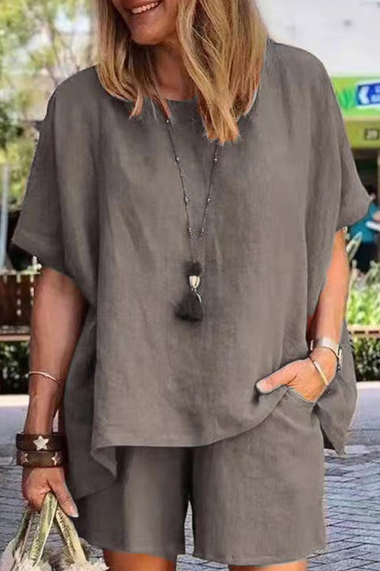 Fashion solid color loose fitting T-shirt+tight shorts for women