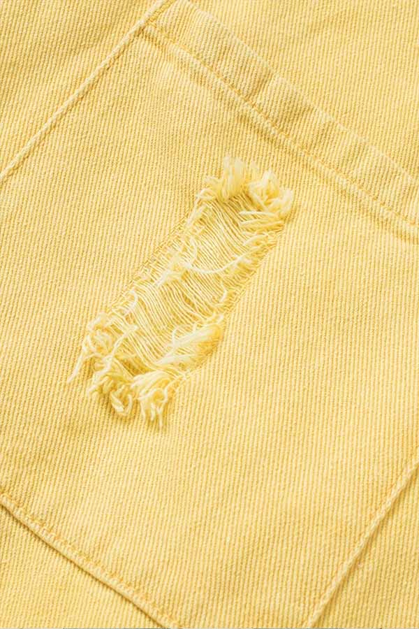 Distressed Raw Hem Denim Jacket with Chest Pockets